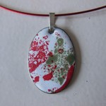 2015Emaille op koper in zilveren zetting; hanger. Techniek: high firing.