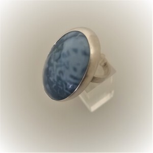 2022Ring met Chalcedoon. Maat 18 3/4, verstelbaar.